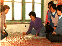 庭院 锡伯族的庭院大小不等,有的面积三四亩,有的则七八亩。庭院都是南北长方形,四周都栽有各种树木。庭院都用矮墙围成,以防牲畜家禽进入。庭院一般都以住房为中心分成前后两院。前院小、后院大,前院一般都种有果树(苹果、杏、桃、枣、葡萄等)和各种花卉。为防止家禽入院乱窜,大部分人家又把前院围以几十厘米的小矮墙,并安上小巧的木门。有些前院大者,把牛羊圈、草棚修在前院一角。在前院紧靠住房的旁边,一般都搭上固定棚,安锅灶,以便夏日天热时做饭用餐。出口处一般设在前院。后院比较宽大,都种果树、杨树、榆树、蔬菜、玉米等。大部分人家把牛羊圈、猪圈、鸡窝、菜窖、停车场等修在后院。